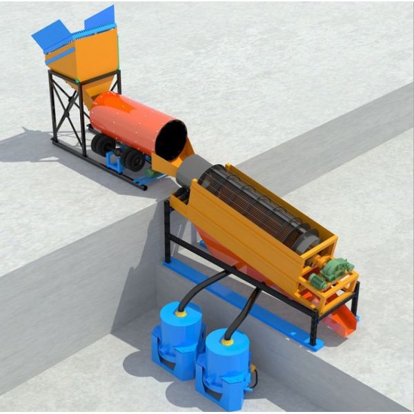 The trommel screen is equiped with water spray pipe inside drum, with feeding hopper, water pump, diesel generator,ect